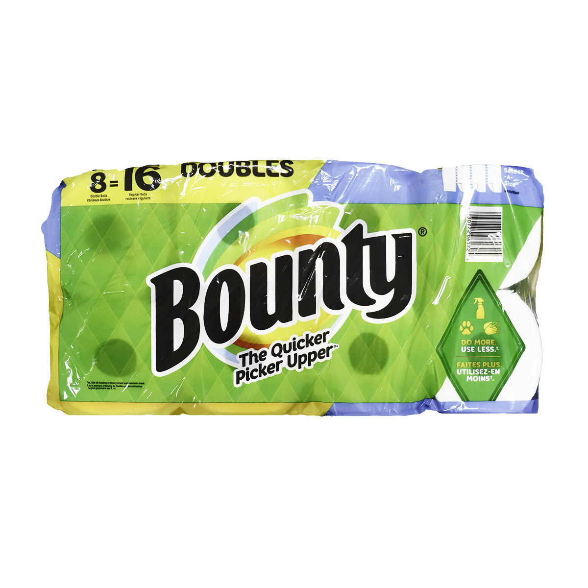 Bounty Select-A-Size Paper Towels, 2 Ply, 90 Sheets/Roll, 8/Pk Thick material is very absorbent to handle tough applications Trap and Lock technology works fast to save time and energy Sheets feature thick quilts to allow you to use less Use in standard, kitchen towel dispensers for perforated rolls